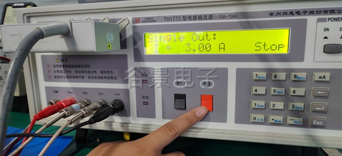 4、按測試儀器上的紅色啟動按鈕,開始加載電流,此時能看到感值隨著電流的變化在變化,這個時候要做好相應的數據記錄;
